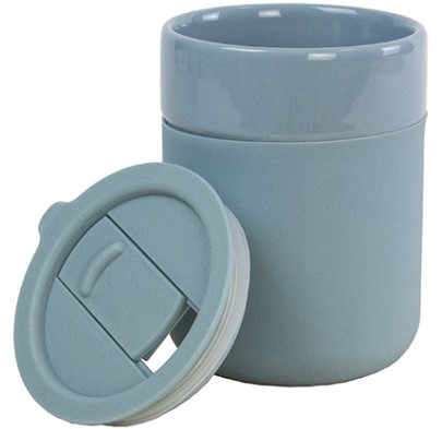 Керамічне горнятко відрізняється теплоізоляційними властивостями спеціальної силіконової накладки і пластикової кришки в колір корпусу з клапаном, які є в комплекті з чашкою. Завдяки кришці напій довго залишається теплим і не розбризкується при ходьбі та в автомобілі, а силіконова накладка не обпалює і не дозволяє горнятку ковзати в руках.